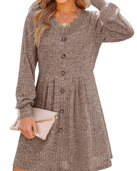 جديد أنيق فستان طويل الأكمام الشتاء أنيق الدانتيل الرقبة مكتب سيدة اللباس الصوف متماسكة