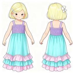 فستان صيفي غير رسمي للفتيات بألوان مخصصة لعمر 7-8 بلا أكمام مع ياقة دمية مطبوعة زهور على القماش المحبوك