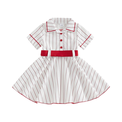 มินิเดรสลำลองสำหรับเด็กผู้หญิงใส่ในฤดูร้อนคอเสื้อคอกลมแต่งขอบเชือกแขวนคอแขนกุดขอบทรงเอ