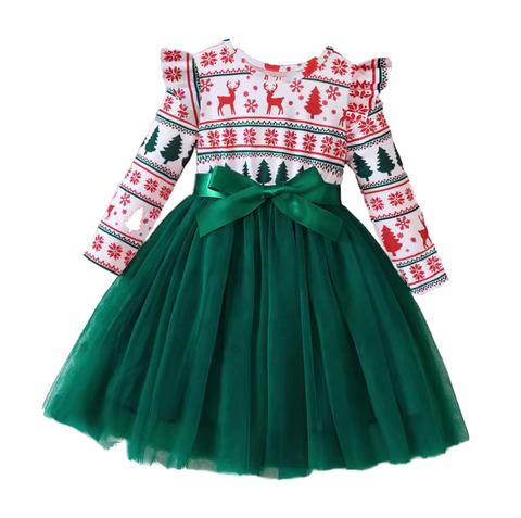 ชุดเดรสปักสองชิ้นโบว์คู่สำหรับเด็กผู้หญิงมาใหม่2024สำหรับปาร์ตี้คริสต์มาสเสื้อผ้าเด็กสำหรับการแสดงวันหยุด