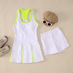 ชุดกีฬา2ชิ้นระบายอากาศสำหรับเด็กผู้หญิงชุดแข่งเทนนิสแขนกุดมีกระเป๋า