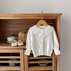 เสื้อโค้ทสเวตเตอร์ถักแขนยาวสำหรับเด็กเสื้อโค้ทฤดูหนาวสีขาวแบบกระดุมเม็ดเดียวสำหรับฤดูใบไม้ร่วง